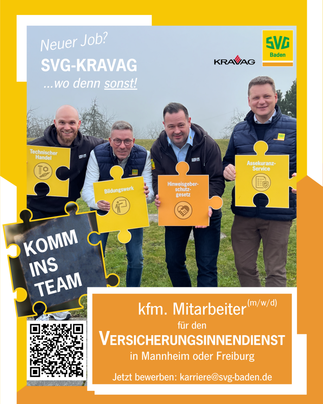Wir suchen für unsere Tochterunternehmen SVG Assekuranz-Service Baden-Saar GmbH ab sofort kfm. Mitarbeiter (m/w/d) für den Versicherungsinnendienst in unserer Geschäftsstelle in Mannheim oder Freiburg!